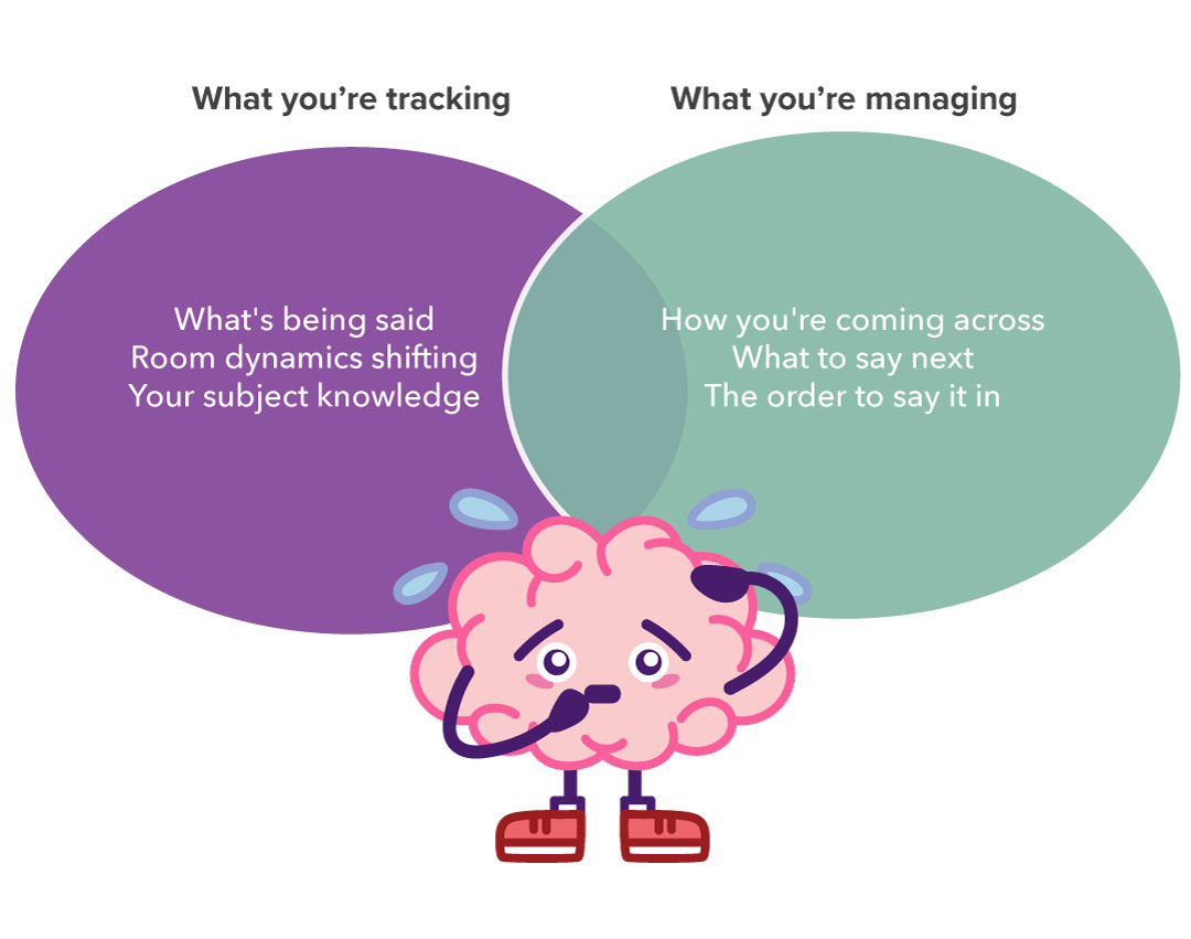 That’s a lot to hold. It’s called cognitive overload, and under that kind of pressure, the thinking that would genuinely impress the room stays locked inside, while a less considered version of you fills the silence.